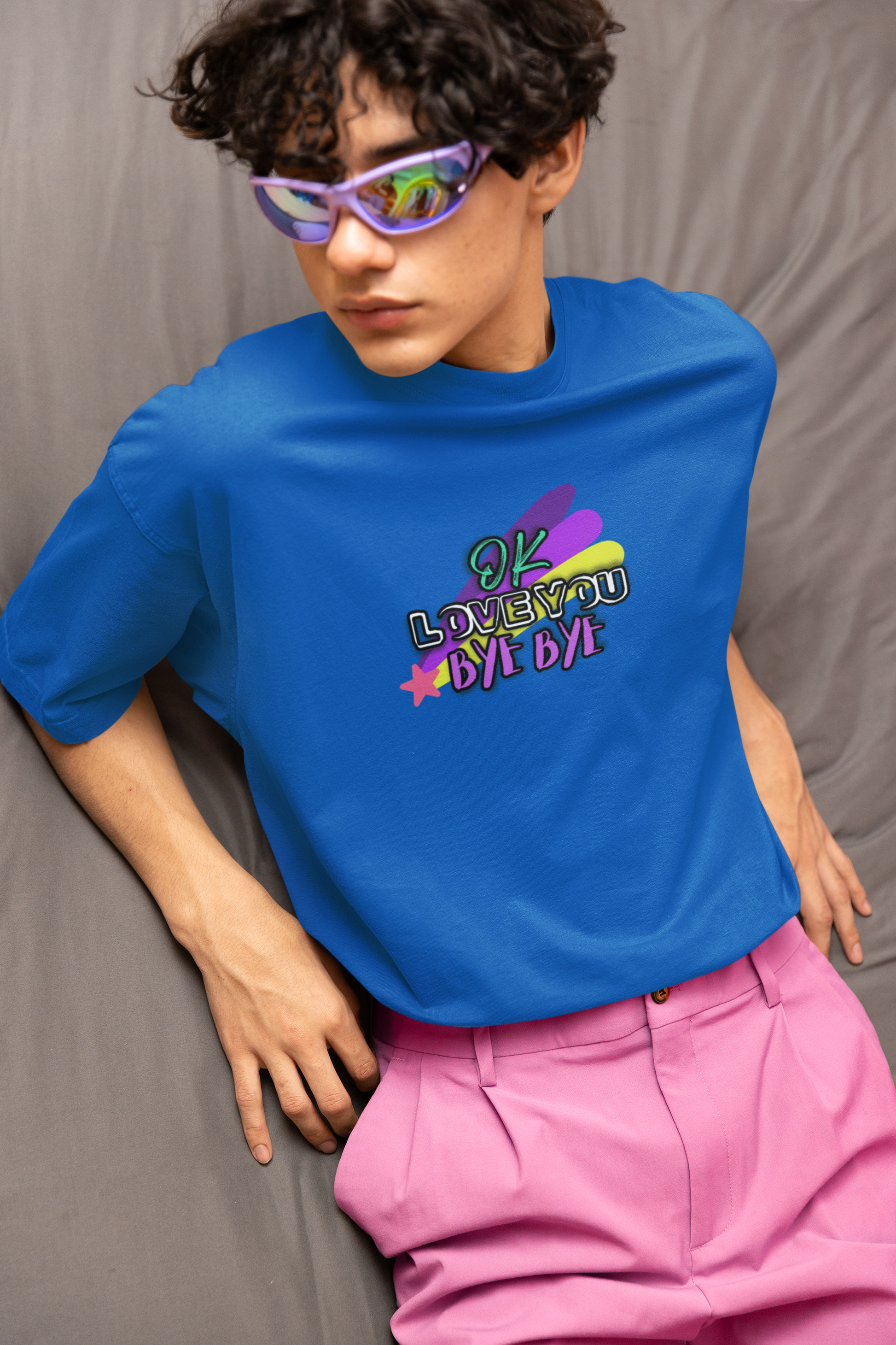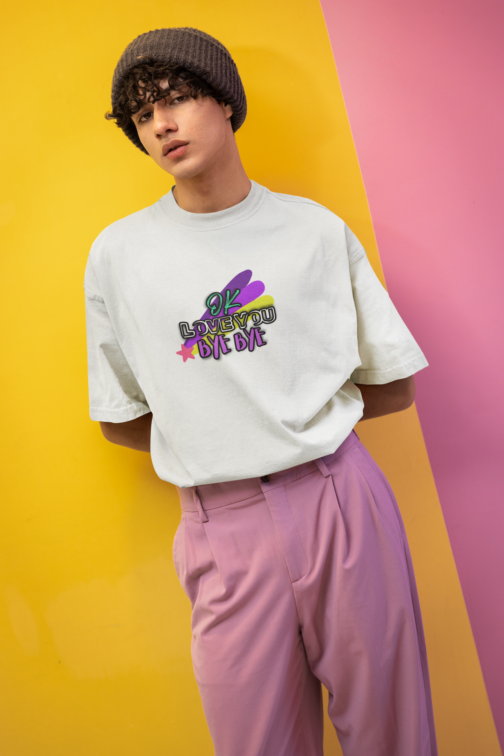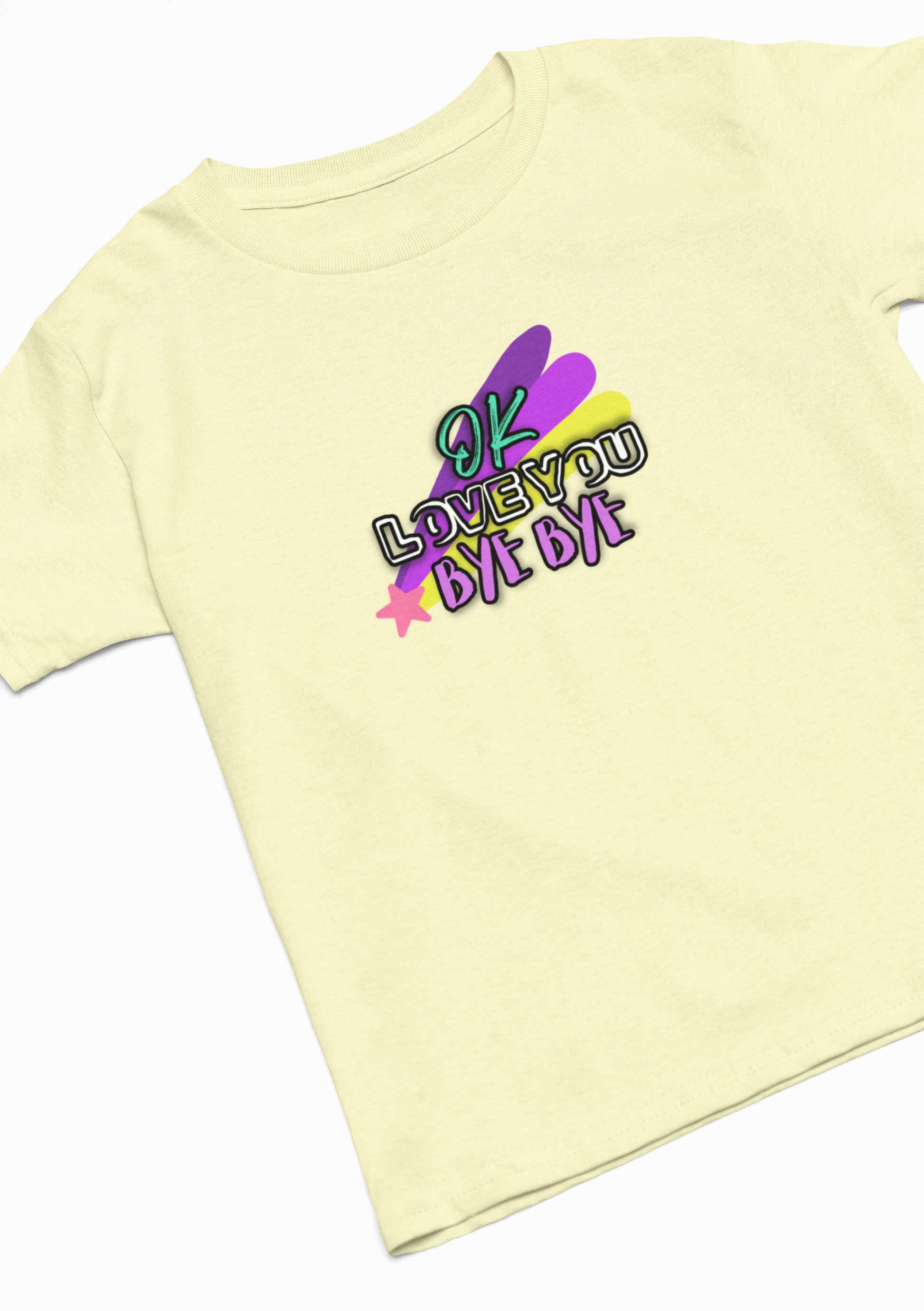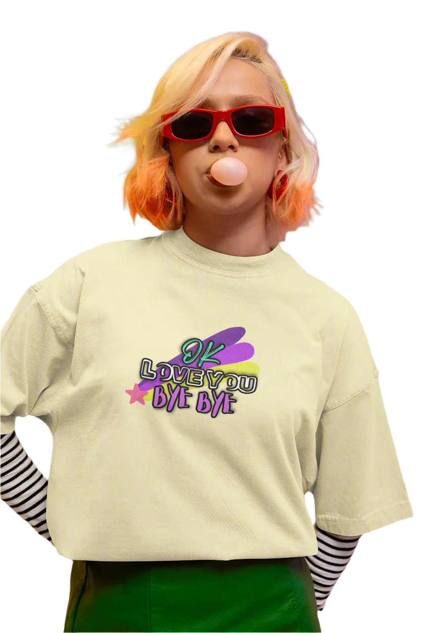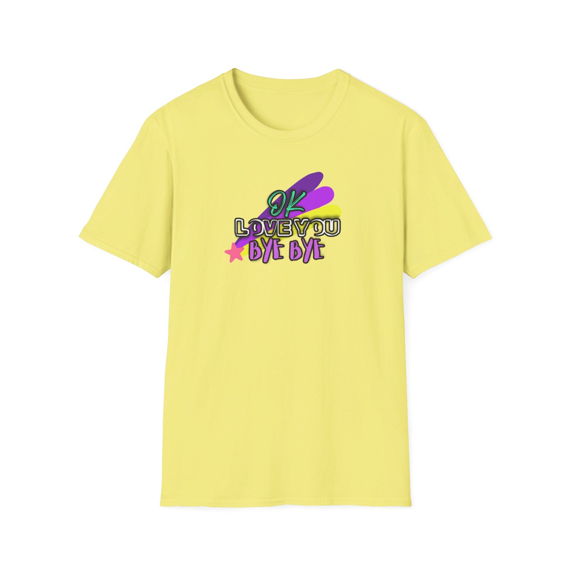 Whether you're saying a quick goodbye or just spreading positive vibes, this t-shirt is sure to bring a smile to everyone’s face. Add a touch of whimsy and heartfelt charm to your wardrobe with our "OK Love You Bye Bye" T-shirt!